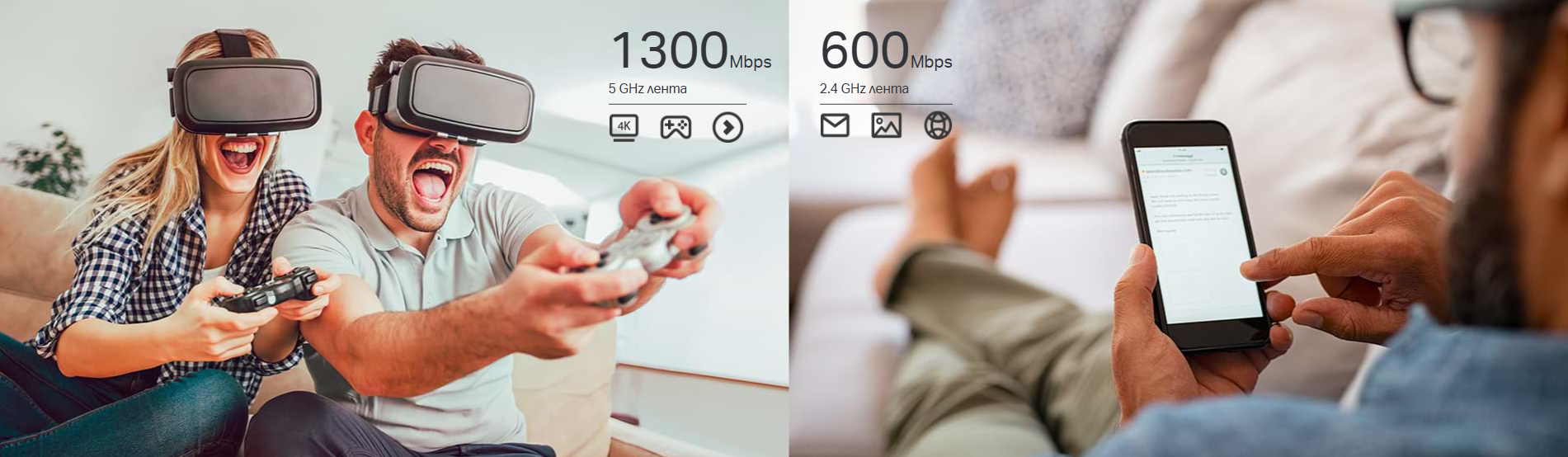 • 802.11ac Wave2 Wi-Fi – 1300 Mbps на 5 GHz лента и 600 Mbps на 2,4 GHz лента.