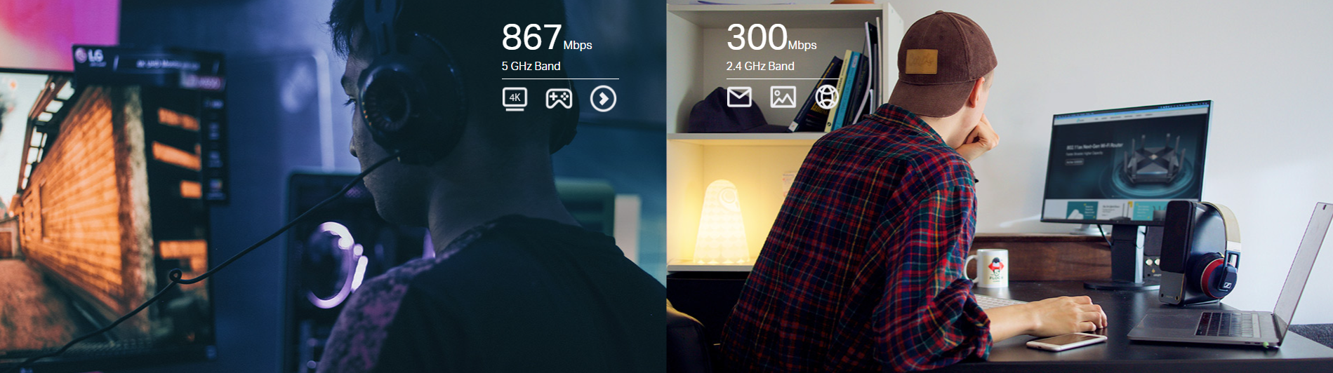 - Високоскоростна Wi-Fi мрежа – до 1200 Mbps Wi-Fi скорости (867 Mbps по 5 GHz лента и 300 Mbps по 2,4 GHz лента)