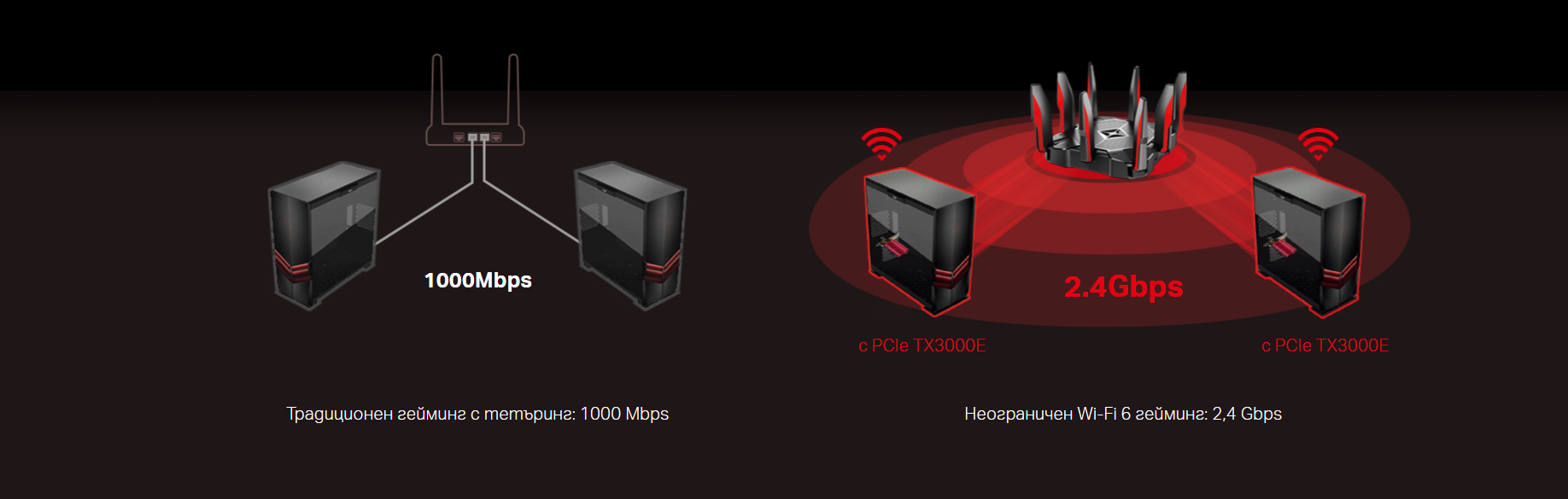 свързаност. Изграден въз основа на Wi-Fi 6, Archer TX3000E е проектиран за освобождаване на вашия гейминг
