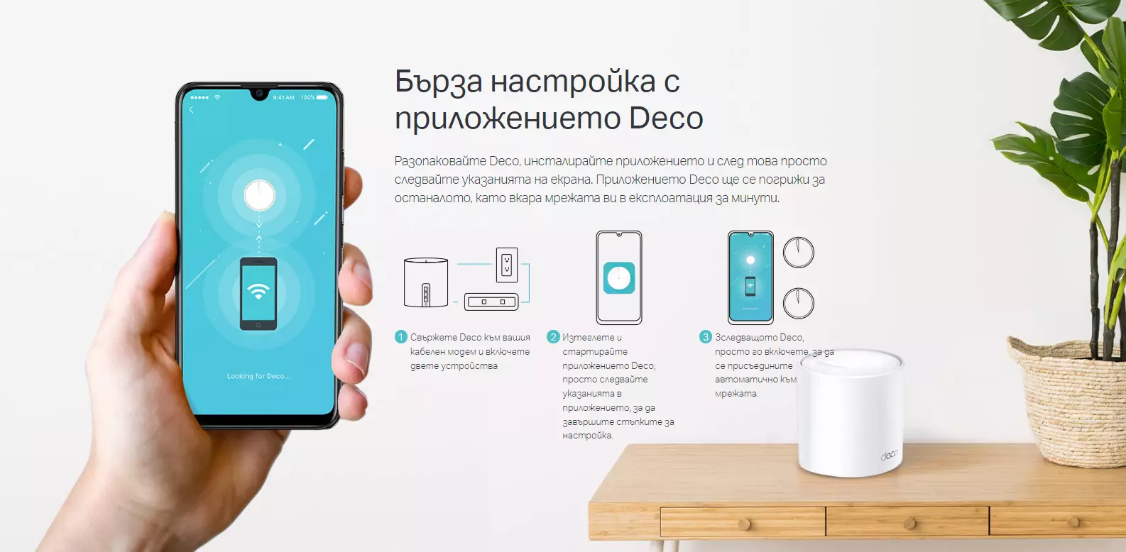 Настройката е по-лесна от всякога – Приложението Deco ви превежда през настройката стъпка по стъпка
