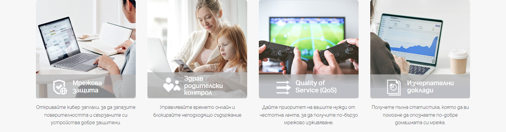 | Parental Controls | Родителски контрол на HomeShield Персонализирани профили Филтър за съдържание Време за семейството Време за лягане Време за изключване Награди за време Семейно онлайн класиране по време Пауза в Интернет Седмични и месечни отчети |