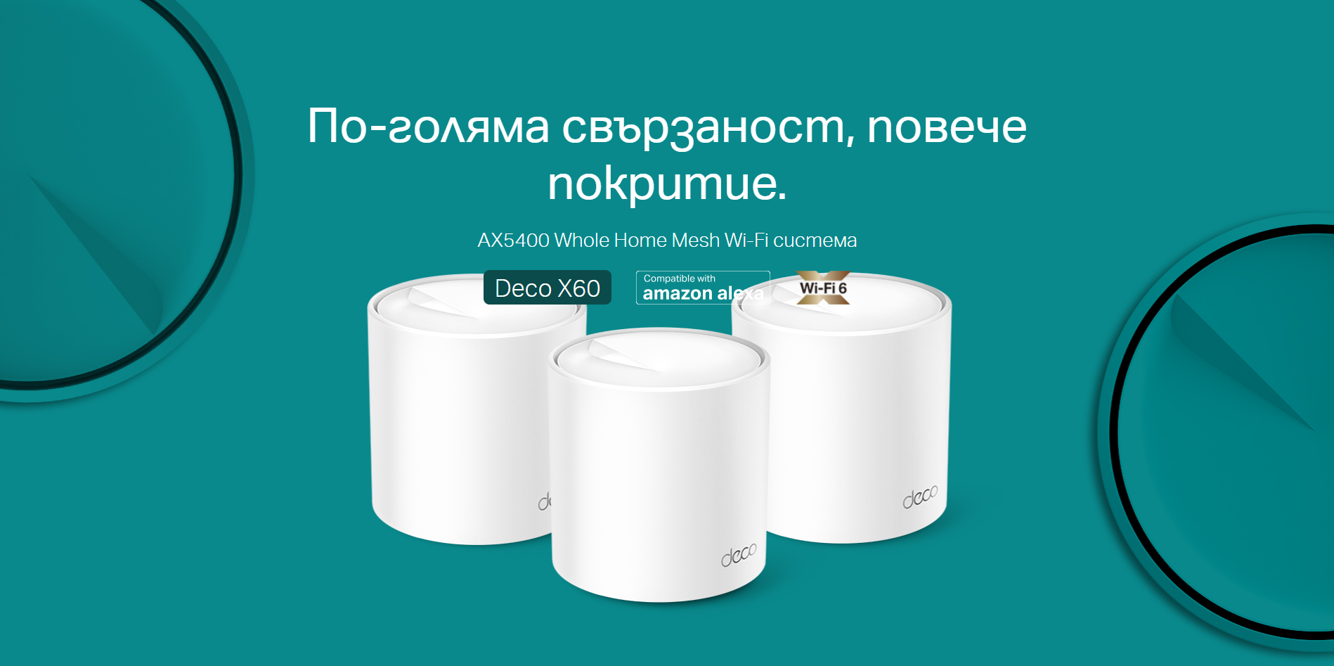 | Package Contents | Deco X60 (2-pack) 2 Deco X60 Units 1 RJ45 Ethernet Cable 2 Power Adapters Quick Installation Guide |