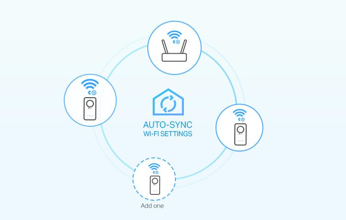 - Wi-Fi Auto-Sync - Добавете допълнителни разширители към вашата захранваща мрежа чрез бутон за сдвояване, равномерно синхронизиране на настройки като SSID, парола, Wi-Fi график и LED график за всички мрежови устройства
