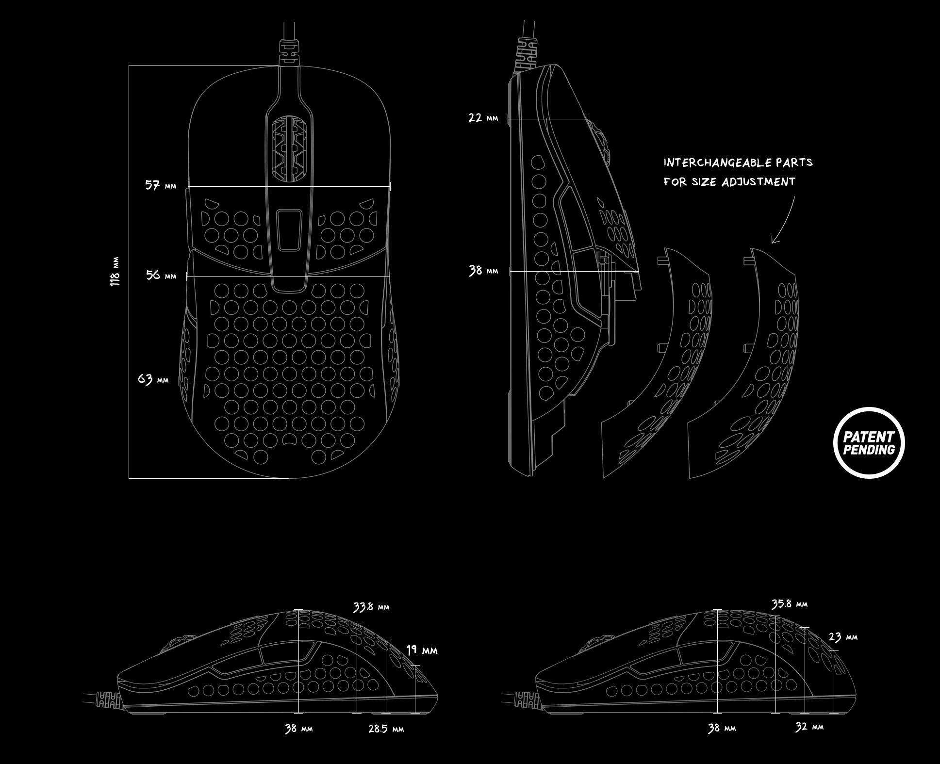 Ultra-light construction. State-of-the-art components. And a symmetrical shape with interchangeable parts that let you adjust its size. The M42 is designed to be the perfect fit for any gamer.