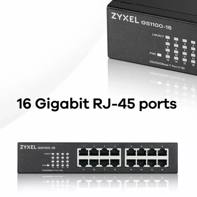 Суич ZYXEL GS1100-16, 16 портов, Gigabit, за монтиране в шкаф